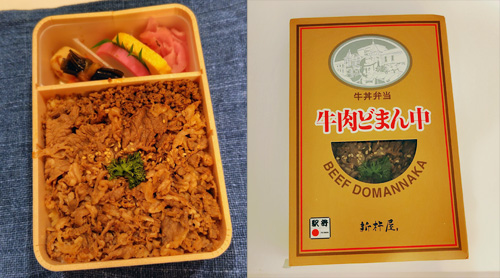 昨夜私が山形市から戻り、一晩明けた今朝はツレが山形県酒田市へ出発。昨日買った牛肉どまん中弁当は、本日一人の夕食のために購入したものだったのです。