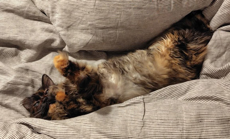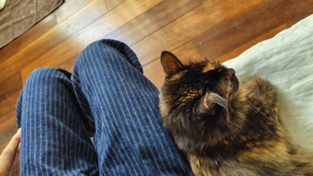 でもまあ、20時まで働くのが当たり前だった昔のことを考えれば、ほぼ定時には上がれますしね。30歳以上年を重ねても、まだまだ楽だと思います。在宅勤務のツレは話し相手が帰るのを待ち焦がれ、帰宅すると、ひとしきりしゃべり続けます。そして、おやつのあとは、洗濯物を片付けたり、夕食の準備をしたり。それぞれに家事を分担し、交代でもふこの添い寝。2人がそろうと、もふこは必ず私にくっついてきます。