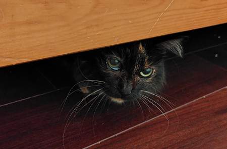 もふこ、点眼するよ。出ておいで~。