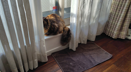 この写真は、私が出勤する前のもふこ。一緒にいたくて走ってくるんですよ。後ろ髪うんと引かれて出勤しました。