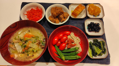 似た内容の繰り返しで、なんか間違い探しみたいですが......常にあるのが八つ頭の煮物。大晦日に作ったこれと、金時人参のソムタムはかなり残っています。