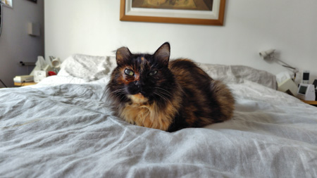 夕方帰宅してから指示の薬を飲ませ、レメロンも無事内服。その後数時間して爆食が始まり、木曜いっぱいで猫缶1缶、ドライフード50グラムを完食、シモベとしては嬉しく、天にも昇る気持ちでした。ところが.......